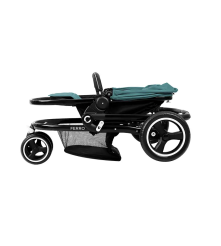 El coche FERRO se destaca por su asiento, que puede colocarse en sentido marcha y contramarcha, y que se transforma fácilmente en moisés. Además, incluye un portabebe homologado bajo normas europeas ECE R44/04, que se adapta al coche de manera sencilla mediante un sistema de encastre.