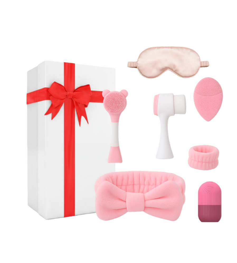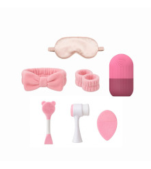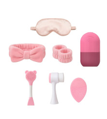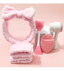Higiene facial profunda: la vincha y muñequeras mantienen el rostro y manos siempre limpias, el cepillo de silicona limpia poros y elimina impurezas sin irritar.