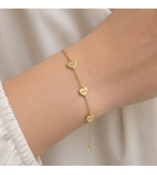Una pieza delicada y sofisticada diseñada para resaltar siempre. Esta pulsera tiene un acabado dorado con corazones, logrando un equilibrio perfecto.